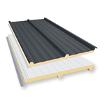 - Camada intermediária em espuma rígida de Poliisocianurato (PIR): ajuda a manter a temperatura interna estável e reduz a transferência de calor entre o ambiente interno e o externo, contribuindo para a eficiência térmica.