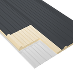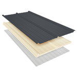 - Camada externa em Aço Galvalume na cor Cinza Carvão Mineral: protege o telhado contra chuva, granizo, vento e radiação solar, oferecendo resistência, durabilidade e um visual moderno e sofisticado.